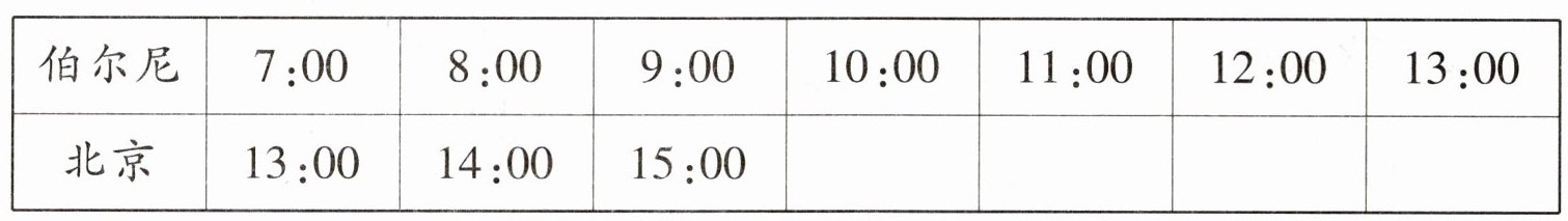 五、下面是北京时间与瑞士首都伯尔尼的时间对照表。