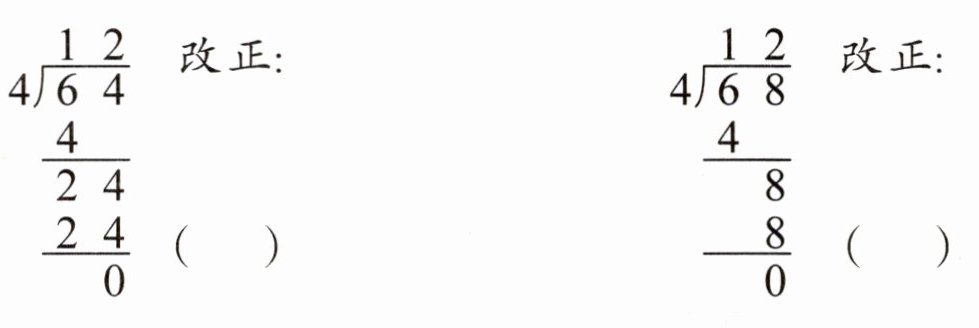 三、数学医生。(对的打“√”,错的打“×”并改正)