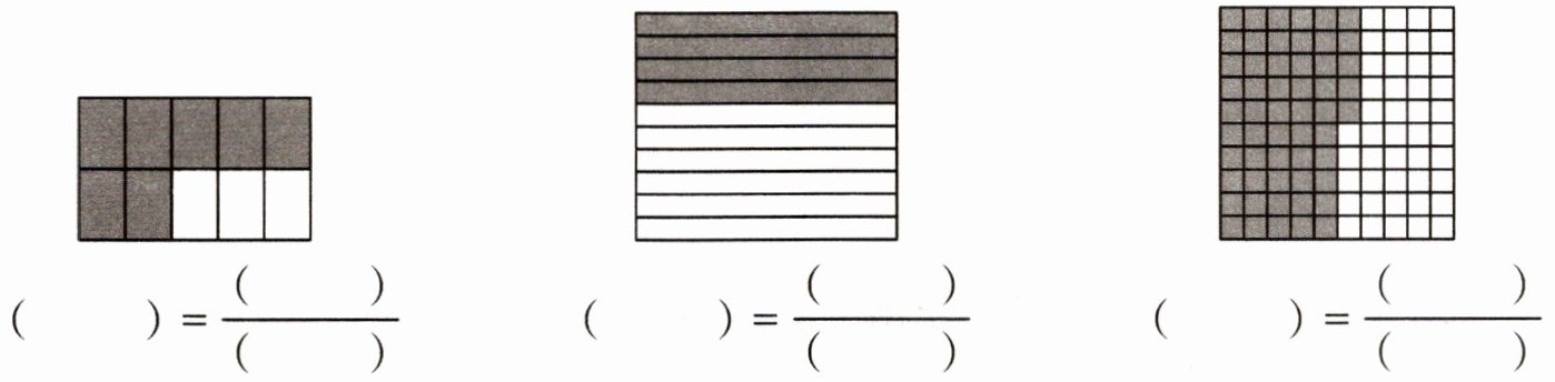 一、分别用小数和分数表示下面每个图中的阴影部分。