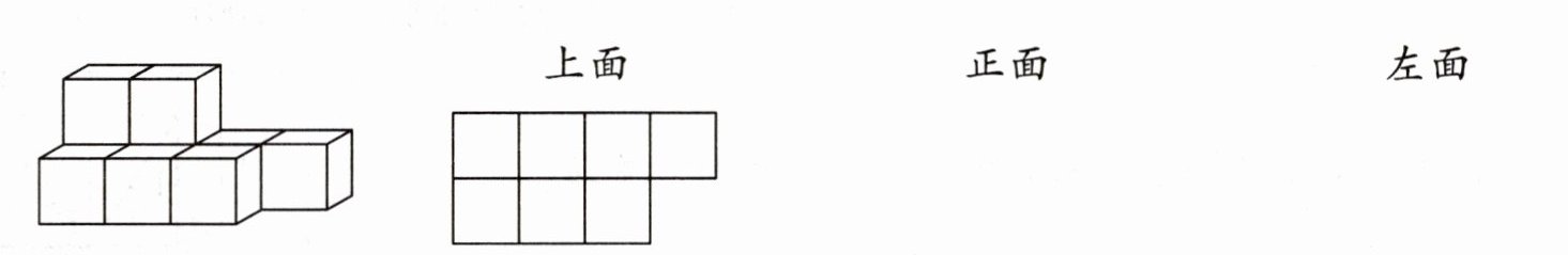 5. 6 个棱长为 4 cm 的小正方体堆放在桌上(如图),计算这个图形露在外面的表面积的算式是(