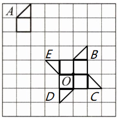 (4)将图形 D 绕 O 点顺时针旋转$90^{\circ }$得到图形 E。