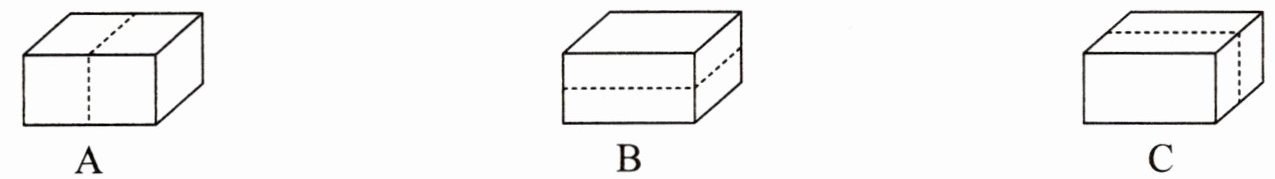 2. 把一个长7cm、宽5cm、高3cm的长方体切成两个长方体,(