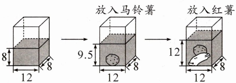 马铃薯:$12×8×(9.5 - 8) = 144(cm^{3})$ 红薯:$12×8×(12 - 9.5) = 240(cm^{3})$