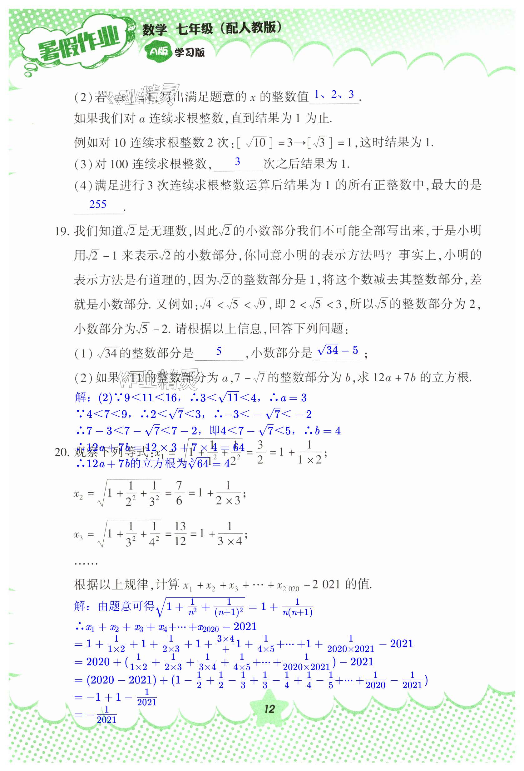 注:目前有些书本章节名称可能整理的还不是很完善,但都是按照顺序排列的,请同学们按照顺序仔细查找。练习册 2025年暑假作业教育科学出版社七年级数学人教版 答案主要是用来给同学们做完题方便对答案用的,请勿直接抄袭。