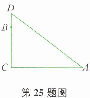 25. 如图所示,在一棵树的 10m 高 B 处有两只猴子,一只猴子爬下树走到离树 20m 处的池塘 A 处。另一只爬到树顶 D 后直接跃到 A 处,跳跃距离以直线计算。如果两只猴子所经过的距离相等,则这棵树高____m。