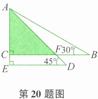 20. 将一副三角尺如图所示叠放在一起,若 $ A B = 14 \mathrm { cm } $,则阴影部分的面积是____$ \mathrm { cm } ^ { 2 } $。