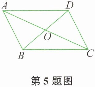 5. 如图所示,$□ ABCD的对角线相交于点O$,且$AB= 5$,$\triangle OCD的周长为23$,则$□ ABCD$的两条对角线长度之和是( )。