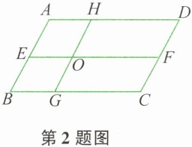 2. 如图所示,在$□ ABCD$中,$EF// AD$,$GH// AB$,$EF交GH于点O$,则该图中的平行四边形的个数为( )。