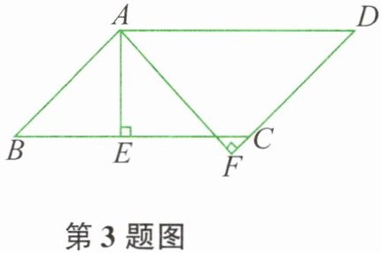 3. 如图所示,在$□ ABCD$中,$AE\perp BC于点E$,$AF\perp DC交DC的延长线于点F$,且$\angle EAF= 60^{\circ}$,则$\angle B$等于( )。