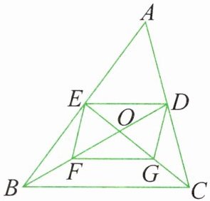 13. 如图所示,$\triangle ABC$中,中线$BD$、$CE交于点O$,$F$、$G分别为OB$、$OC$的中点。求证:四边形$DEFG$为平行四边形。