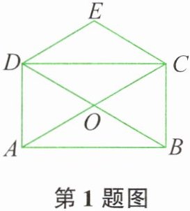 1. 如图所示,矩形 $ABCD$ 的对角线 $AC$、$BD$ 相交于点 $O$,$CE// BD$,$DE// AC$。若 $AC = 4$,则四边形 $CODE$ 的周长是( )。