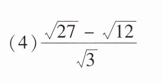 (3) $\sqrt{16} × \sqrt{\frac{3}{4}} ÷ \sqrt{3}$ (4) $\frac{\sqrt{27} - \sqrt{12}}{\sqrt{3}}$