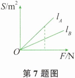 从图像可以看出,在相同的压力$F$下,射线$l_A$对应的受力面积$S_A$小于射线$l_B$对应的受力面积$S_B$。