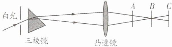 本题可根据光的色散现象以及凸透镜对光线的作用来进行分析。