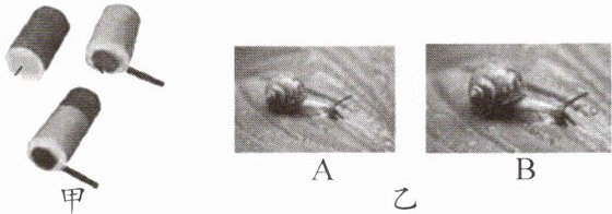 (2)小华用此照相机模型观察到物体的像如图乙 A 所示,若想使半透明薄膜上的像变大些,如图乙 B 所示,应使镜头离被观察的物体