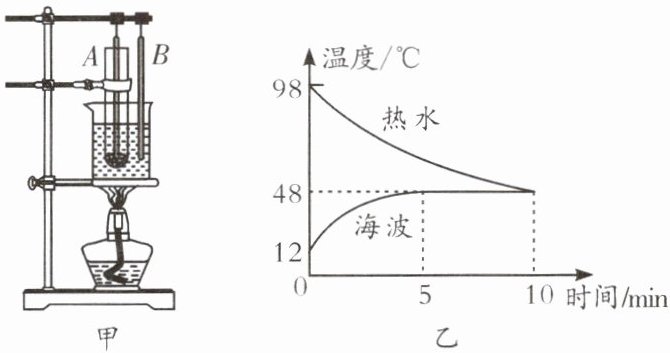 12. (新编)如图甲所示,将装有海波的大试管放入沸水中并取走酒精灯,温度计A和B分别测量海波和烧杯中热水的温度,并绘制出了海波和热水的温度—时间图像,如图乙所示。由图像可知,海波属于