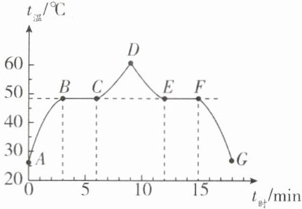 (3) $D$点在熔化过程结束后,此时海波处于液态;$G$点在凝固过程结束后,此时海波处于固态。