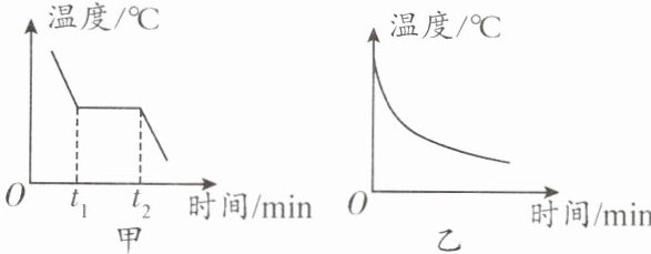 是表示液态烛蜡的凝固图像。图甲中,物质在$t_1$至$t_2$时间内是固液共存