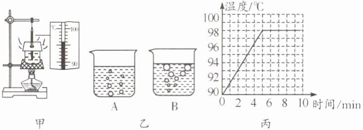 (选填“A”或“B”)。(2)根据实验数据,作出了水的温度随时间变化的图像,如图丙所示,由图像可知,在当时条件下,水的沸点是