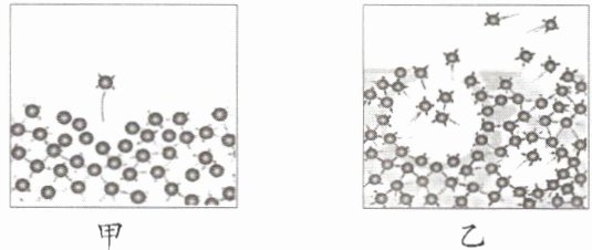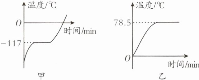 选项A分析:晶体有固定的熔点,在熔化过程中,温度保持不变。由图甲可知,固态酒精在$-117^{\circ}C$时温度保持不变,说明固态酒精有固定的熔点,所以固态酒精是晶体,A选项正确。