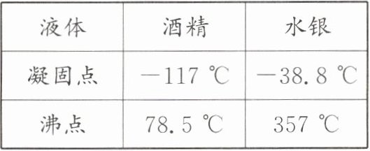 (3)本实验中水的沸点是98°C,而酒精的沸点是78°C,水银的沸点是357°C,故选择水银温度计。