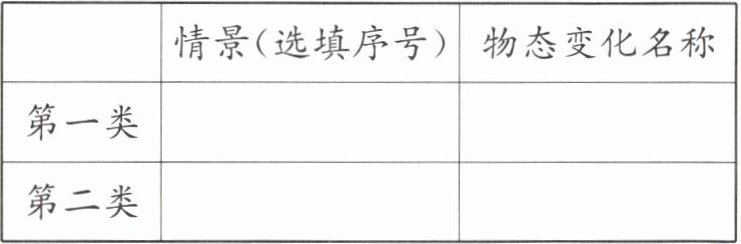 3. (新编)请将下列生活情景按涉及的物态变化进行分类,完成下表。