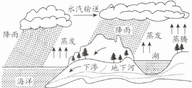 【例2】如图是大自然中水循环的示意图。江、河、湖、海以及大地表层中的水不断