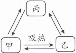 甲到丙未标注吸放热,但乙到丙有箭头,乙是气态,气态变为另一种状态,若乙到丙放热,则丙为液态(甲),不符合;若乙到丙吸热,气态吸热无法直接变为固态,推测甲到丙放热,液态放热变为固态,故丙是冰(固态)。