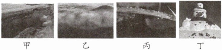 C.丙图:金秋,镜泊湖畔朝露晶莹