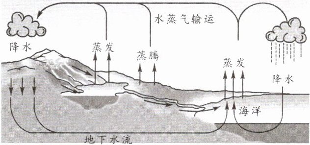 6. (新编)如图所示的是地球上水循环的示意图,请完成填空。