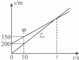 当$t_{甲}=10s$时,$s_{甲}=350m - 200m=150m$(这里$350m$是甲车在$10s$时的路程,$200m$是初始时甲车在乙车前方的距离,两者相减得到甲车$10s$内实际行驶的路程)。