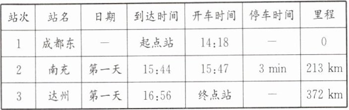 (3)列车从成都东至达州的平均速度为多少千米每小时?(计算结果保留整数)