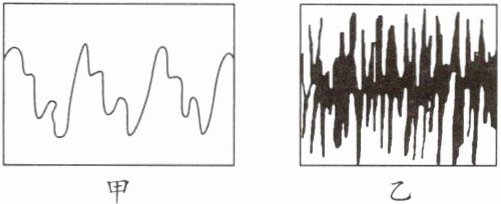 本题考查乐音和噪声的波形特点,需要从波形图中判断出乐音和噪声。乐音是由物体做规则振动产生的,其波形图呈现出有规律的形态;噪声是由物体做无规则振动产生的,其波形图是杂乱无章的。通过观察甲、乙两图的波形,甲图波形有规律,是乐音的波形;乙图波形杂乱无章,是噪声的波形。