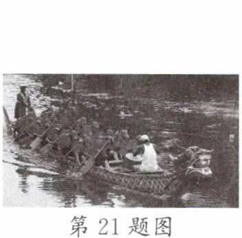 21.(南京中考)2023年5月,第七届南京市中小学生龙舟大赛成功举办。如图所示的是比赛中的一个场景。敲鼓越用力,鼓声越响,这是通过改变声源的