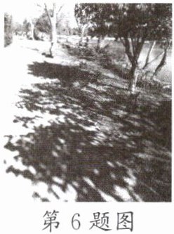 6. (青羊区期末)如图所示,太阳光透过浓密的树叶在地面上出现了一些圆形光斑,圆形光斑是太阳的