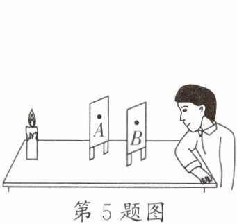 5. (新编)如图所示,小明想通过A、B两张纸片上的小孔看见烛焰,他应将烛焰、两个小孔和人眼调到