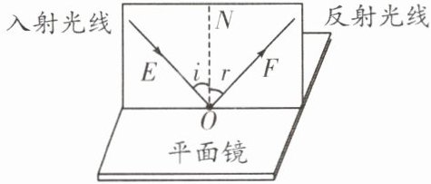 7. (青岛中考)探究光的反射定律。如图所示,把一个平面镜放在水平桌面上,再把一张纸板ENF竖直地立在平面镜上,纸板上的直线ON垂直于镜面。使一束光贴着纸板沿某一角度射到O点,经平面镜反射,沿另一个方向射出。在纸板上用笔描出入射光EO和反射光OF的径迹。