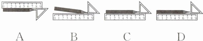 D选项中,刻度尺的零刻度线没有与铅笔的起始端对齐,所以D选项错误。