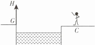 解:首先作出G、H两点关于水面的对称点G'、H',即GH的虚像;然后把人眼和H'连接起来作出反射光线,如图所示: