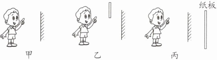 (3)在平面镜背后距平面镜1m的位置放置一个硬纸板,如图丙所示,小明