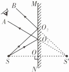 (1) 设S为物体,S'为像,MN为平面镜,O为SO与MN交点。过S作SA、SB入射光线,反射光线为O₁A'、O₂B',反向延长交于S'。