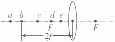 13. (新编)在探究凸透镜成像的规律的实验中,保持凸透镜的位置不变,先后把烛焰放在a、b、c、d、e各点,如图所示,分别调整光屏的位置,则:
