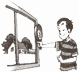 10. (赤峰中考)如图所示,通过焦距为10 cm的凸透镜观察窗外远处的风景,看到的是 (