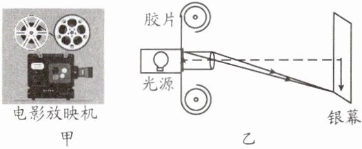本题是有关凸透镜成像的题目,需要掌握凸透镜的成像规律, 电影放映机是利用凸透镜成像的原理来工作的,分析成像时的物距与焦距的关系,得出胶片的放置位置,凸透镜成像时,$2f>u>f$,成倒立、放大的实像,应用于幻灯机、投影仪和电影放映机。
