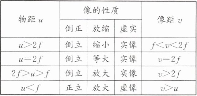 |$u = 2f$|倒立|等大|实像|$v = 2f$|