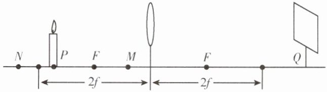 某次实验中将蜡烛放置在$P$处,光屏上所成的像在$Q$处,现将蜡烛放置在$Q$处,根据