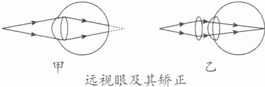 对于远视眼,由于晶状体太薄,折光能力太弱,或者眼球在前后方向上太短,导致近处物体的像成在视网膜后方,所以看不清近处的物体,需要用对光线有会聚作用的凸透镜来矫正,使像成在视网膜上。