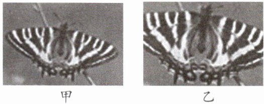观察照片甲和乙可知,照片乙中蝴蝶的像比照片甲中蝴蝶的像大。