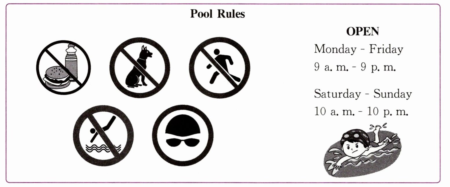 ( )1. Mary finds the pool rules near the pool.