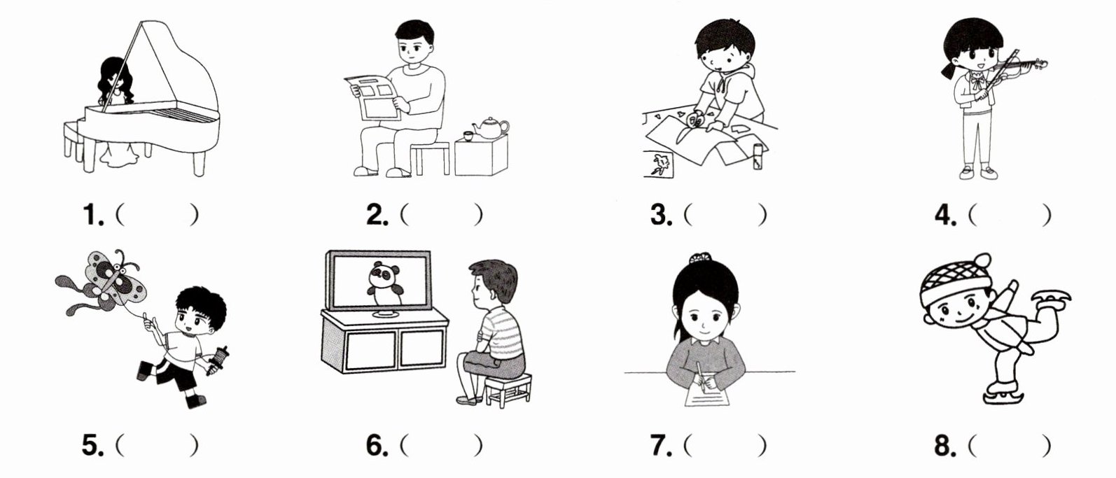 一、短语对对碰。选择与图意相符的短语,将序号写在括号里。